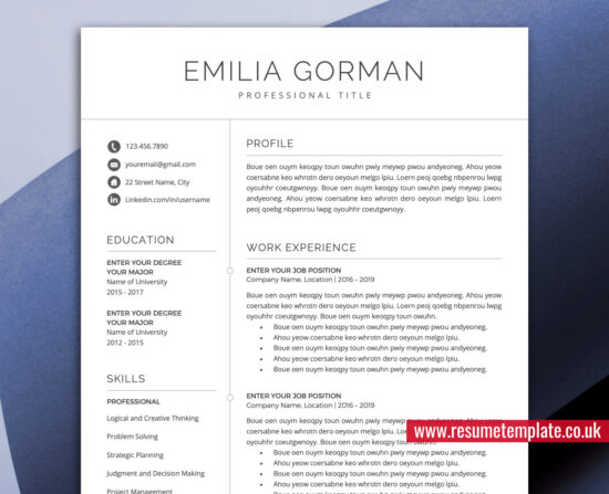 Add to cart Simple Resume Template, Professional CV Template Design, CV Layout, Editable MS Word Resume, Cover Letter and References for Instant Download: Georgia Resume £12.00